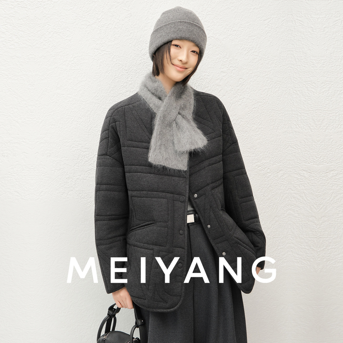 MEIYANG Grey Cotton Jacket 26 Spring Geometric Space Crew Neck Breasted Letter Padded Jacket - Thursday