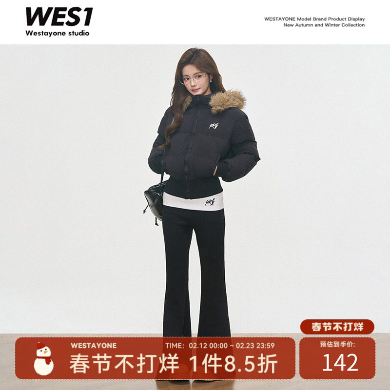 10.7 New product WESTAYONE waist cinched fur collar cotton jacket women's 2025 new winter cotton jacket + waist bootcut pants