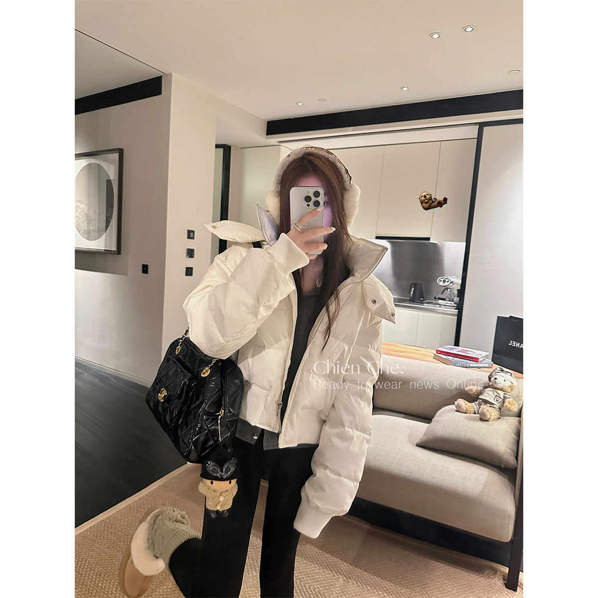 Chien white stand-up collar hooded cotton jacket winter thickened warm short bread down cotton jacket for women