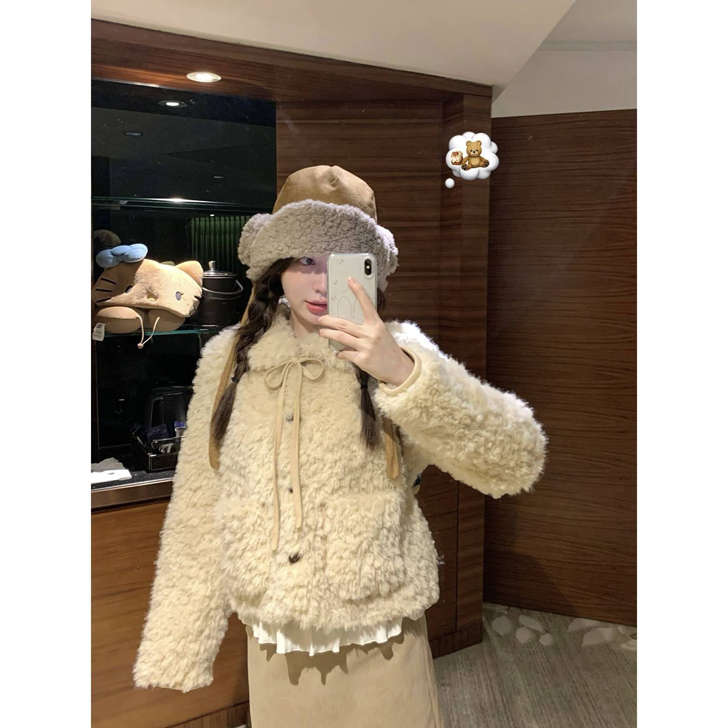 Wooden sheep winter new suede plush lapel jacket padded jacket women's American vintage Maillard cotton jacket