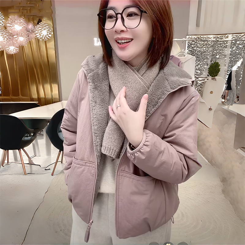 Korean fleece thickened two-sided lambswool cotton jacket women's jacket winter new zippered hooded cotton jacket top