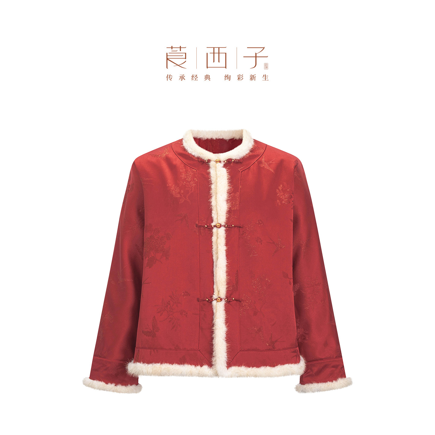 Xizi new Chinese style festive red New Year's greeting gown, cotton jacket, female mulberry silk, mink, fur collar, padded jacket