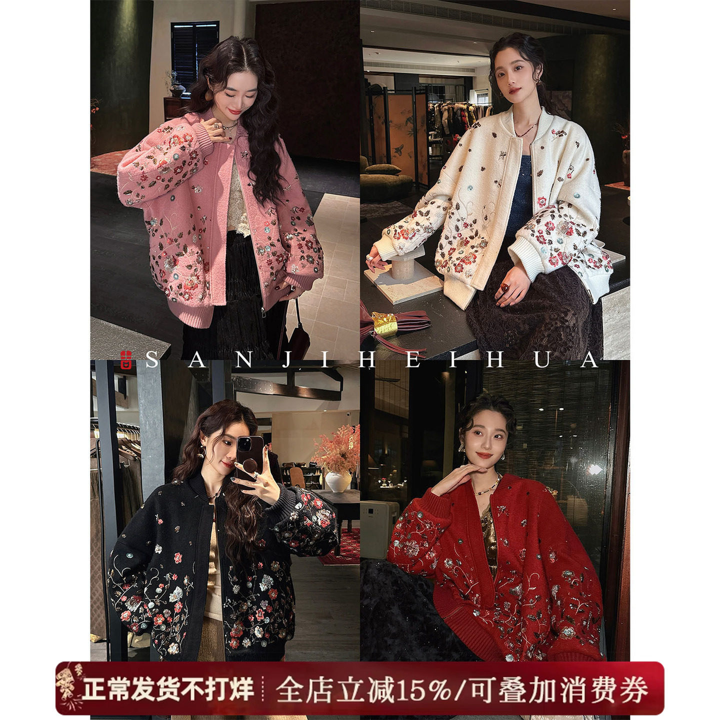 Sanji Black Flower [Full of Flowers] New Chinese beaded embroidered wool baseball cotton jacket women's winter national trend