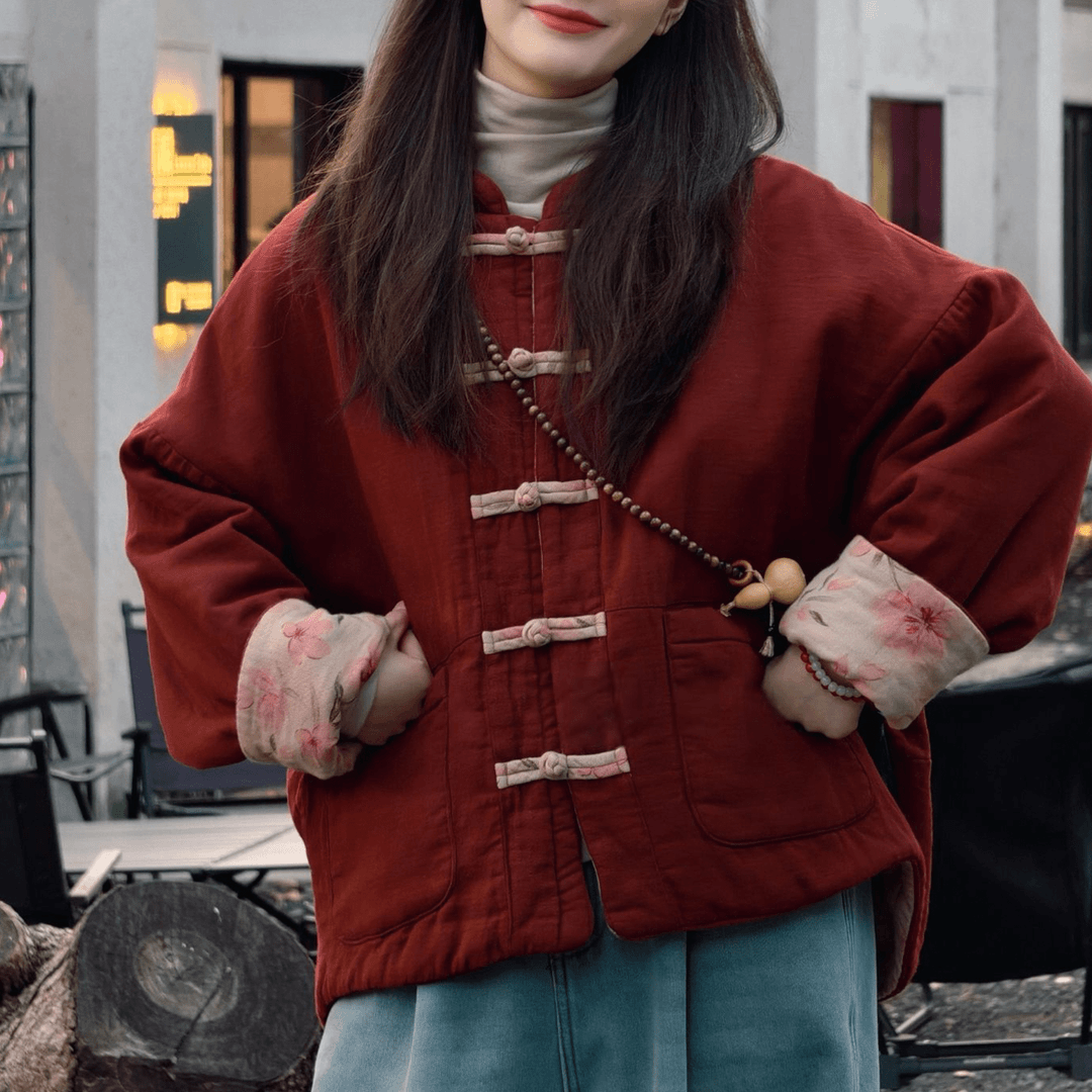 MEIYANG Drunken Hibiscus Chinese Jacket Graceful Chinese Floral Embroidery Quilted Warm Cotton Jacket - Thursday