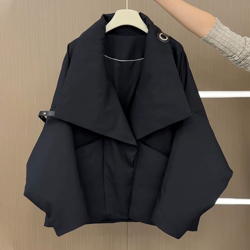 Winter 2025 new autumn and winter black lapel down cotton jacket women's design is super good-looking, warm cotton jacket