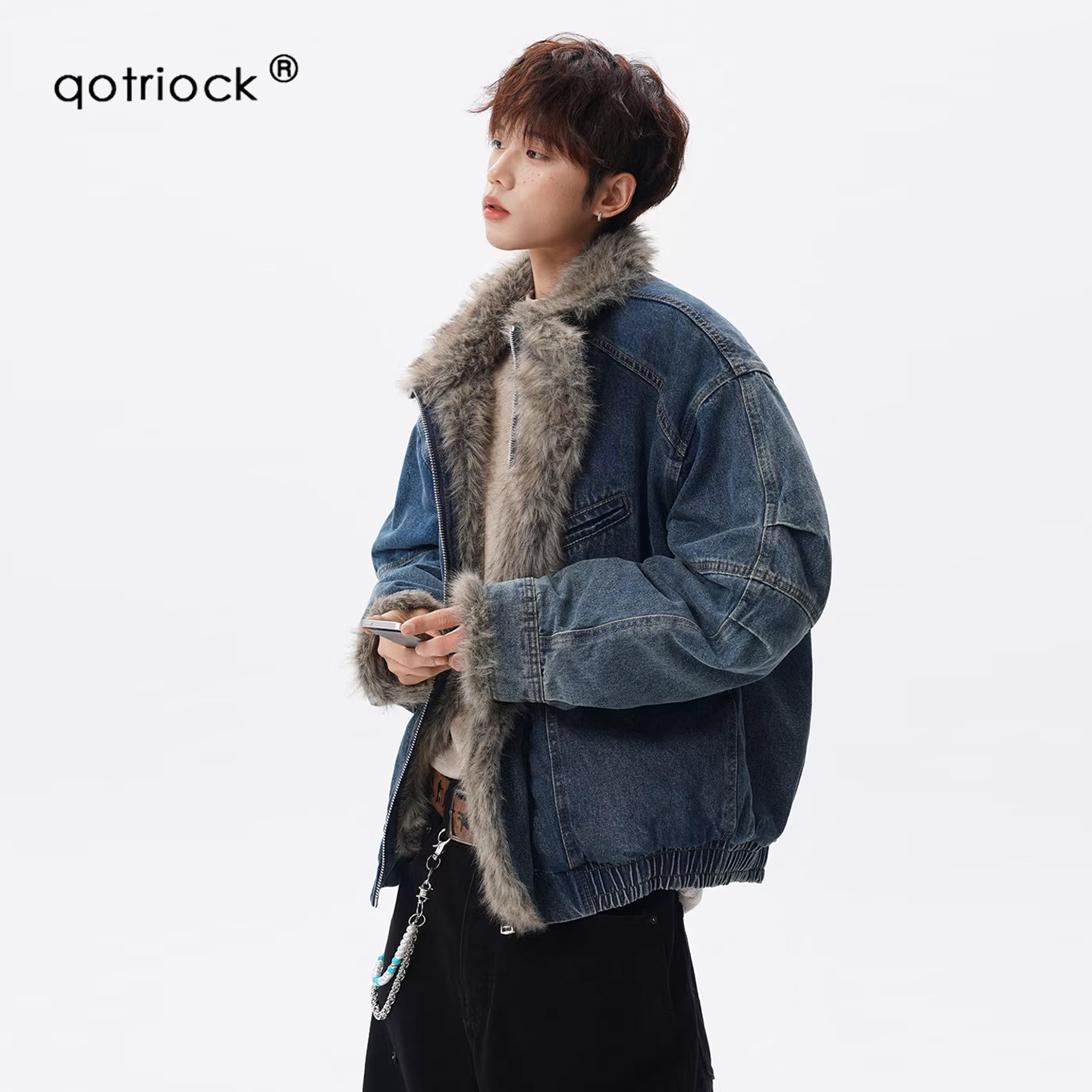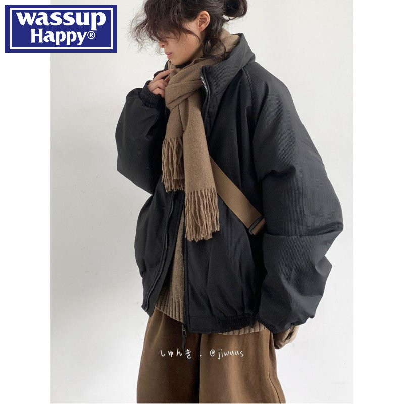 Original cropped jacket cotton jacket men's winter American vintage stand-up collar bread suit high street ruffian handsome motorcycle lint jacket