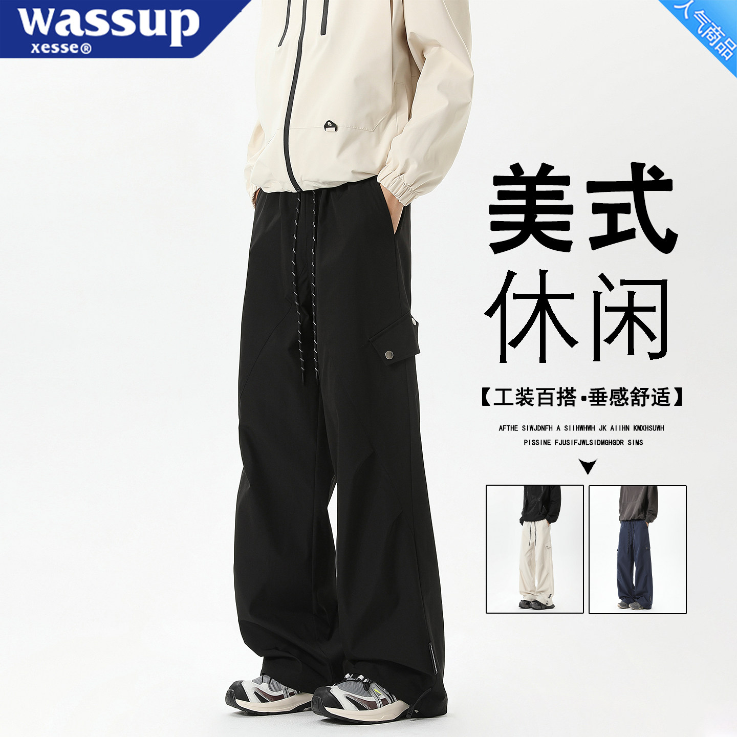 American retro cargo slacks men's and women's spring and autumn trendy brand loose and versatile straight drape pair pants