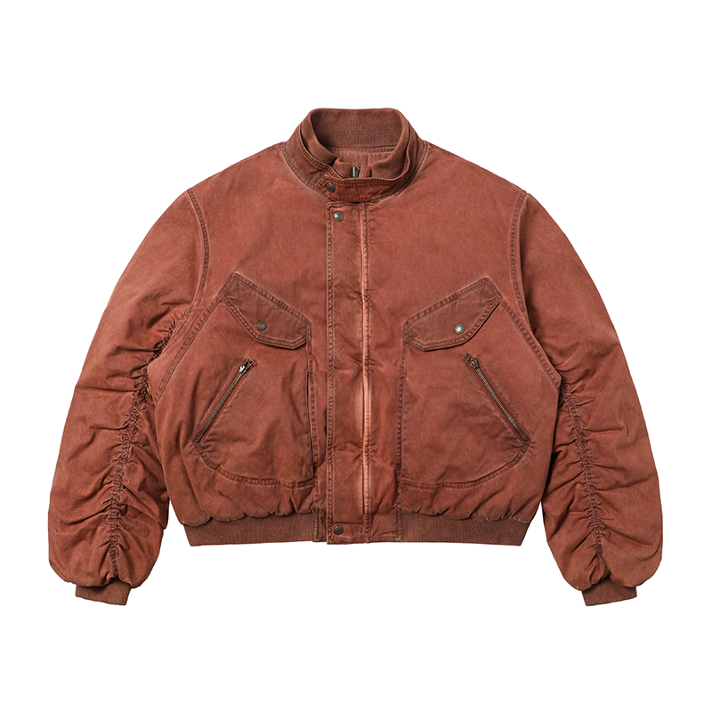 Hobkirk 25FW washed stained distressed stand-up collar loose bomber jacket short cotton jacket