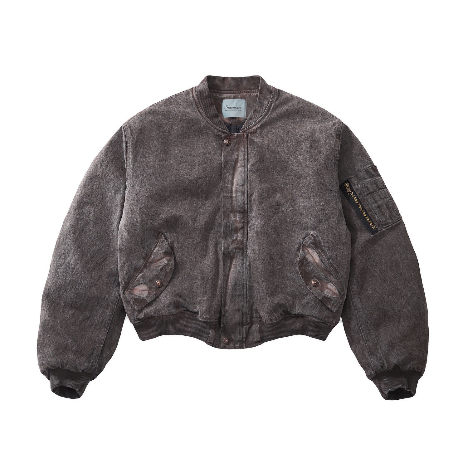 SUNINWAVE 25AW "Shimoyama Tiger" flame gray heavy wash stained silhouette bomber cotton jacket