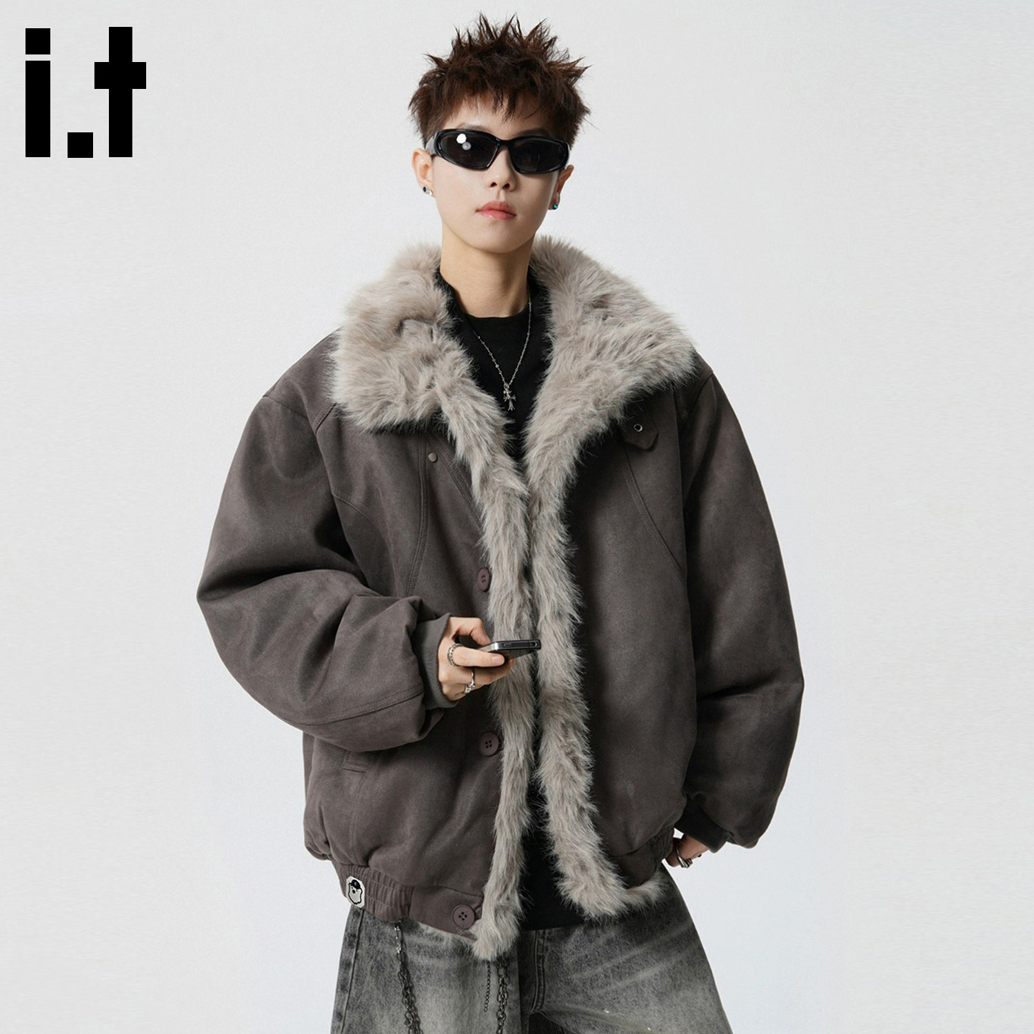 it :CHOCOOLATE American fashion brand mountain carved fur collar cotton jacket men's winter loose warm cotton jacket