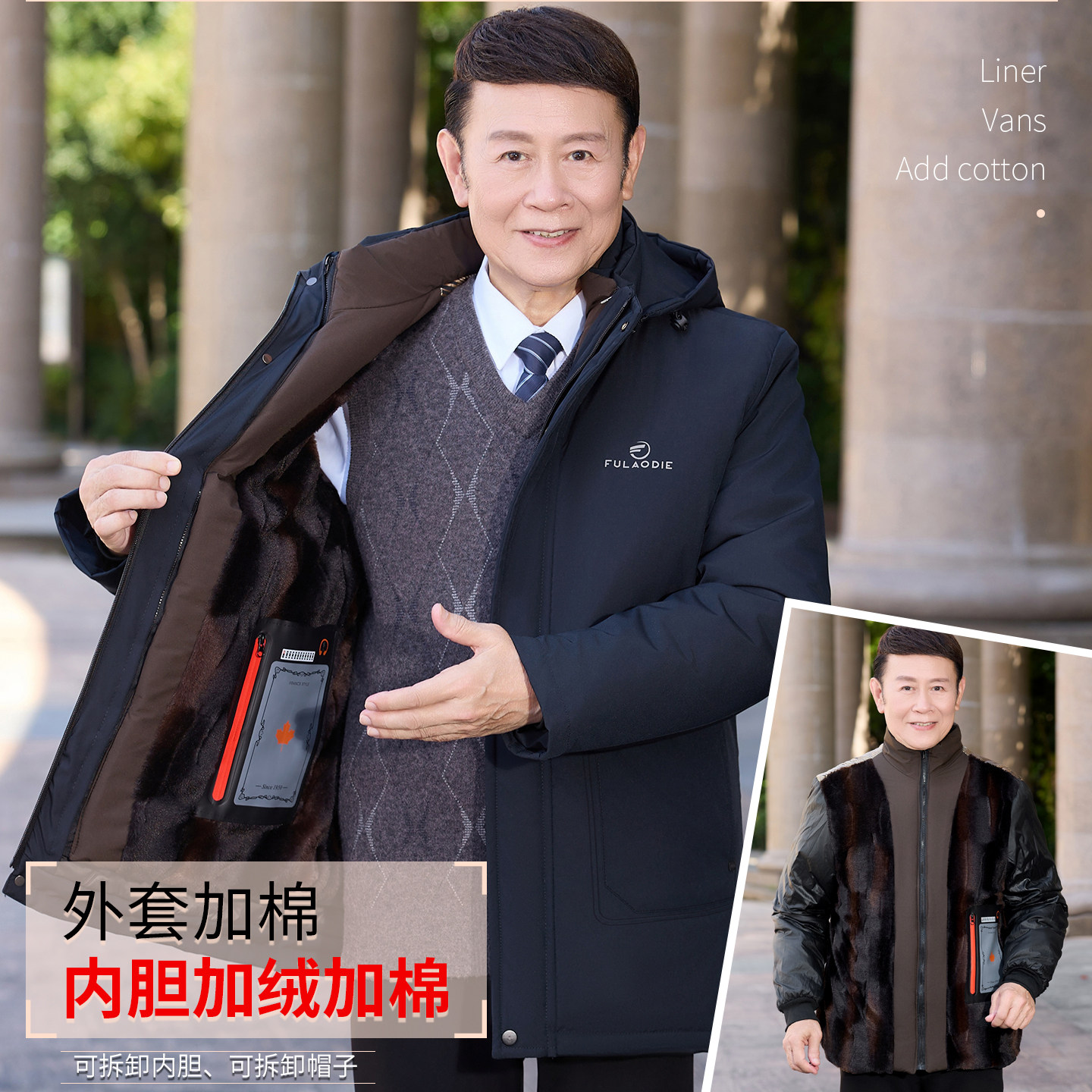 Men's padded jacket middle-aged and elderly winter jacket fleece thickened padded jacket male grandpa dad new padded clothes are removable