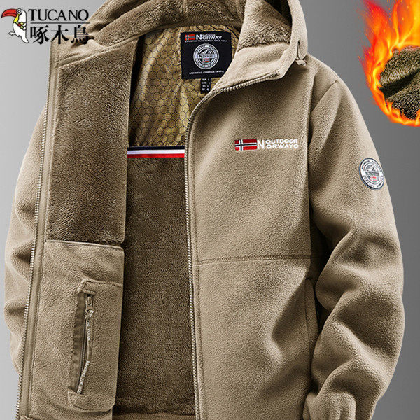 Woodpecker reversible polar fleece jacket men's fall and winter thickened warm hooded fleece jacket loose plus size