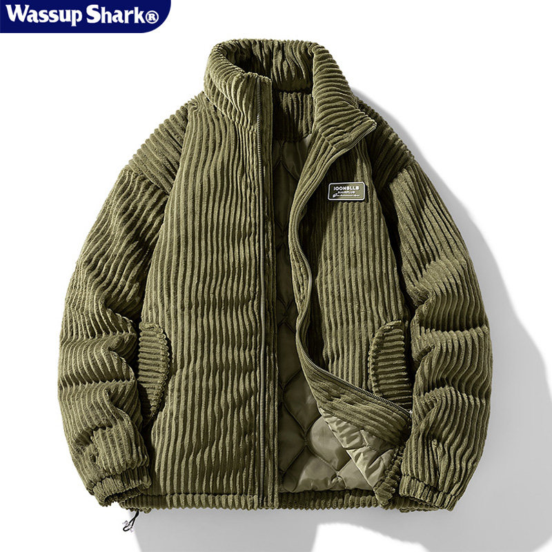 wassup shark american casual corduroy cotton jacket men's autumn and winter coarse stripe texture jacket couple cotton jacket men