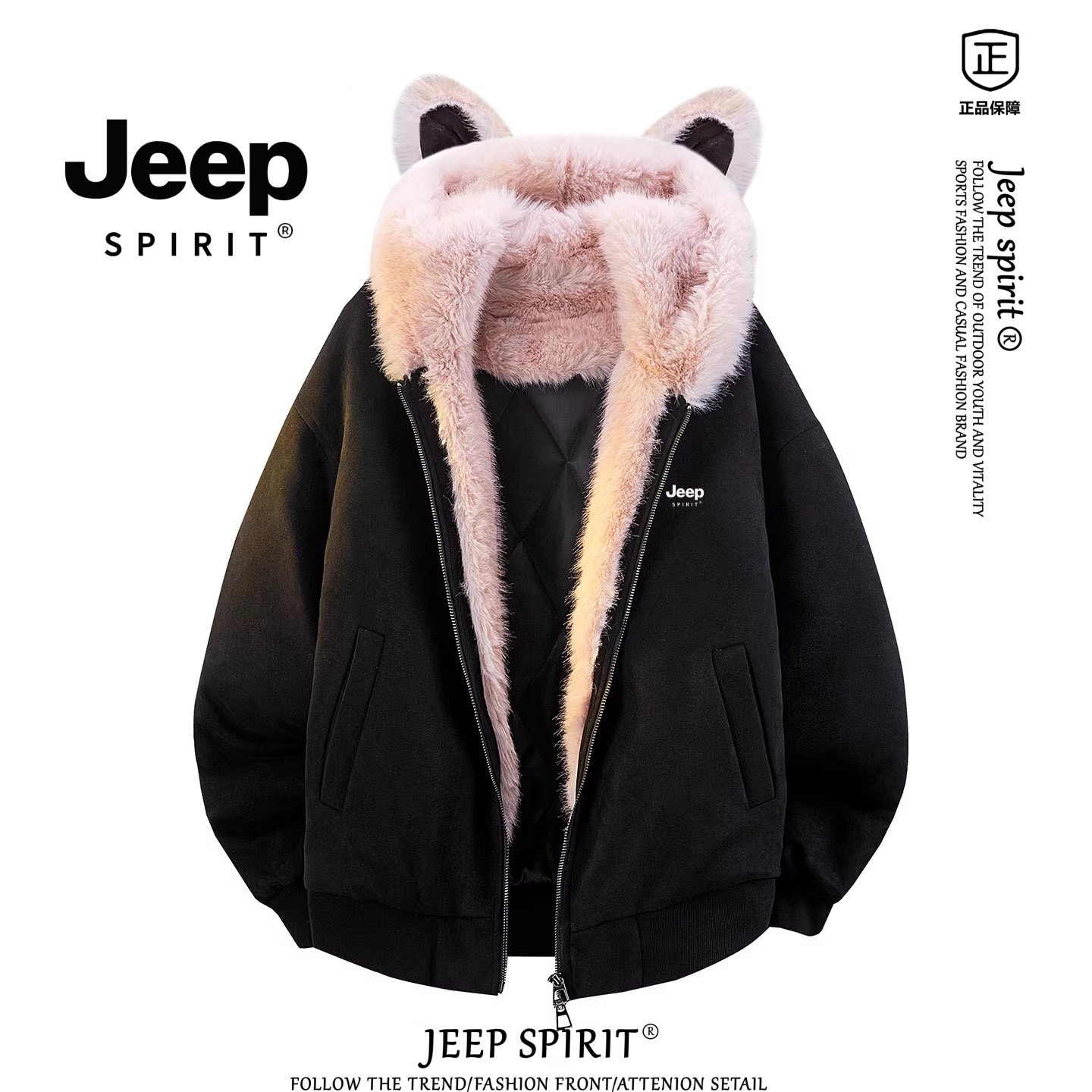 JEEP SPIRIT American Hooded Cat Ear Seat Mountain Carving Padded Suit Men's Winter 2025 New Thickened Warm Jacket
