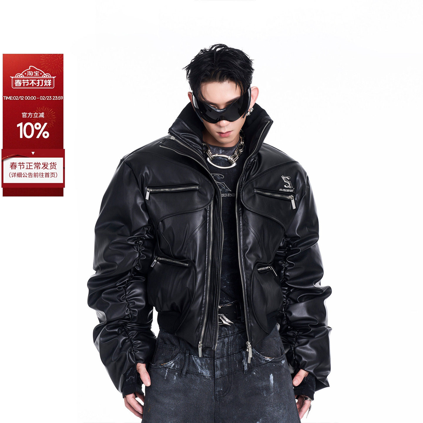 MAT JENIN Detachable Sleeve Airplane Buckle Padded Bomber Silhouette Cut Chunky Bomber Jacket Men