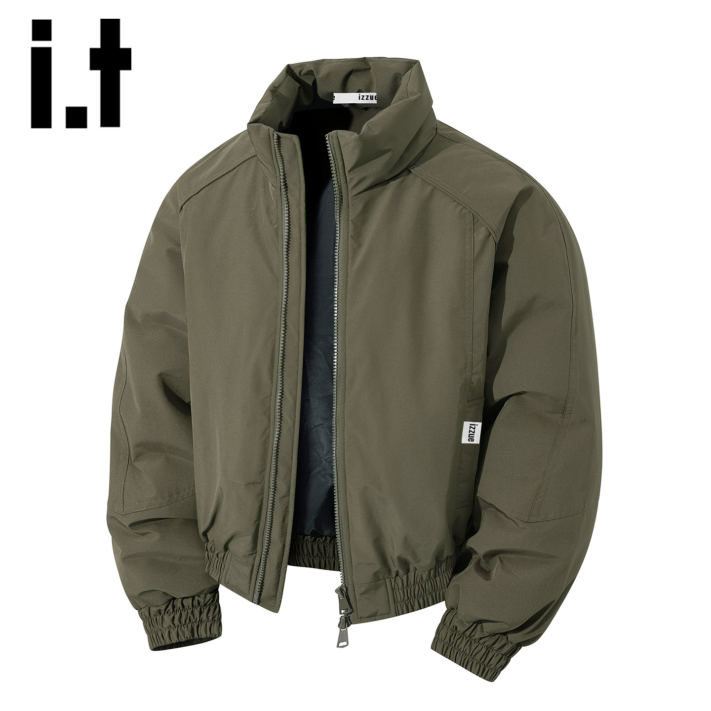 it izzue American stand-up collar bomber jacket men's fall and winter thickened warm loose short cotton jacket Y