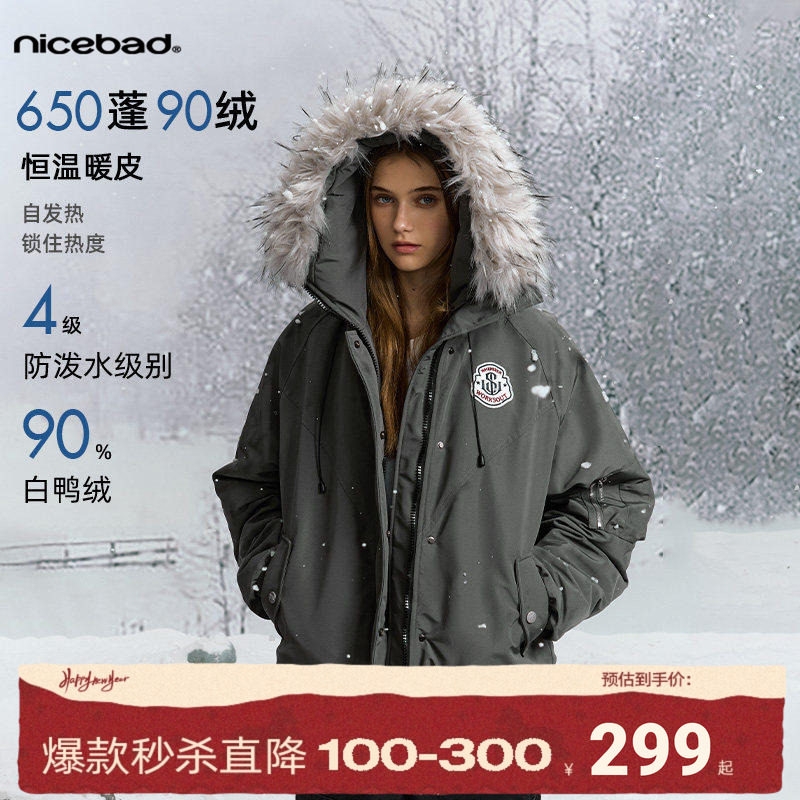 NICEBAD detachable fur collar hooded parka cotton jacket trendy warm down jacket