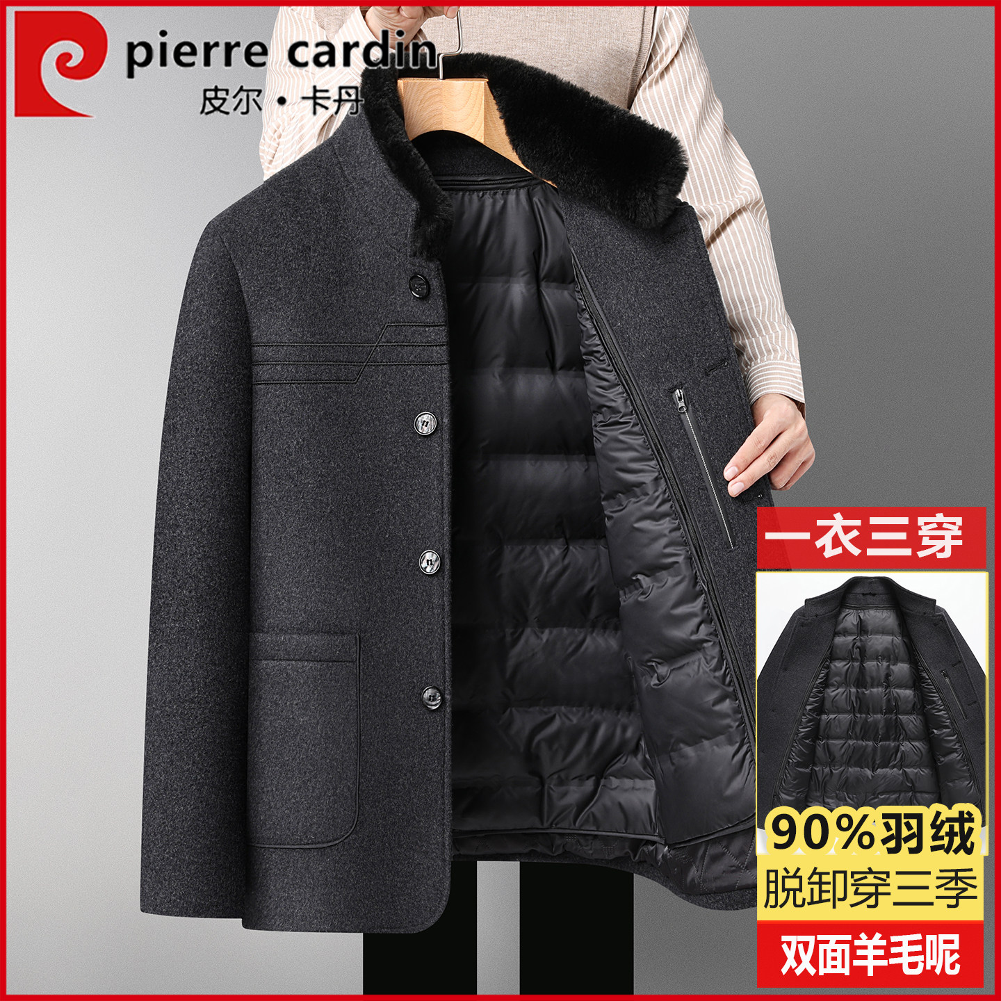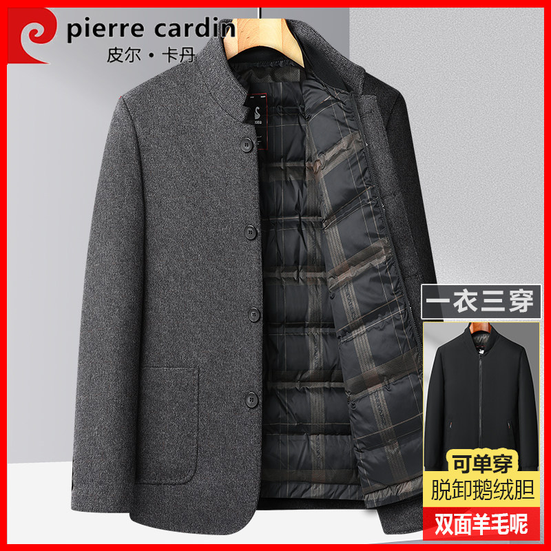 Pierre Cardin stand-up collar wool down jacket middle-aged men thickened detachable cotton jacket dad winter jacket