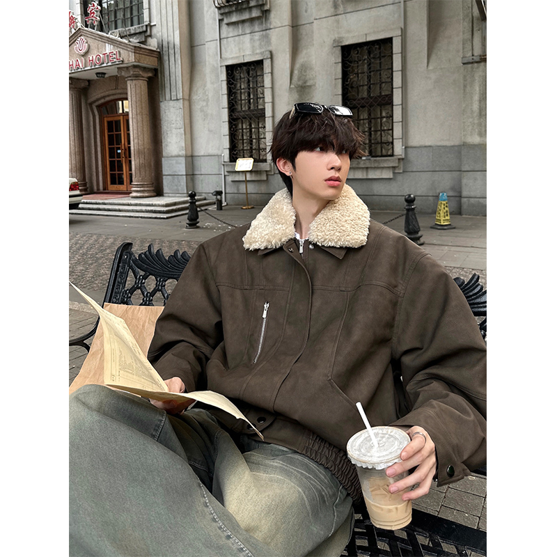Dream made American barn style lambswool PU lint jacket men's winter thickened warm work cotton jacket