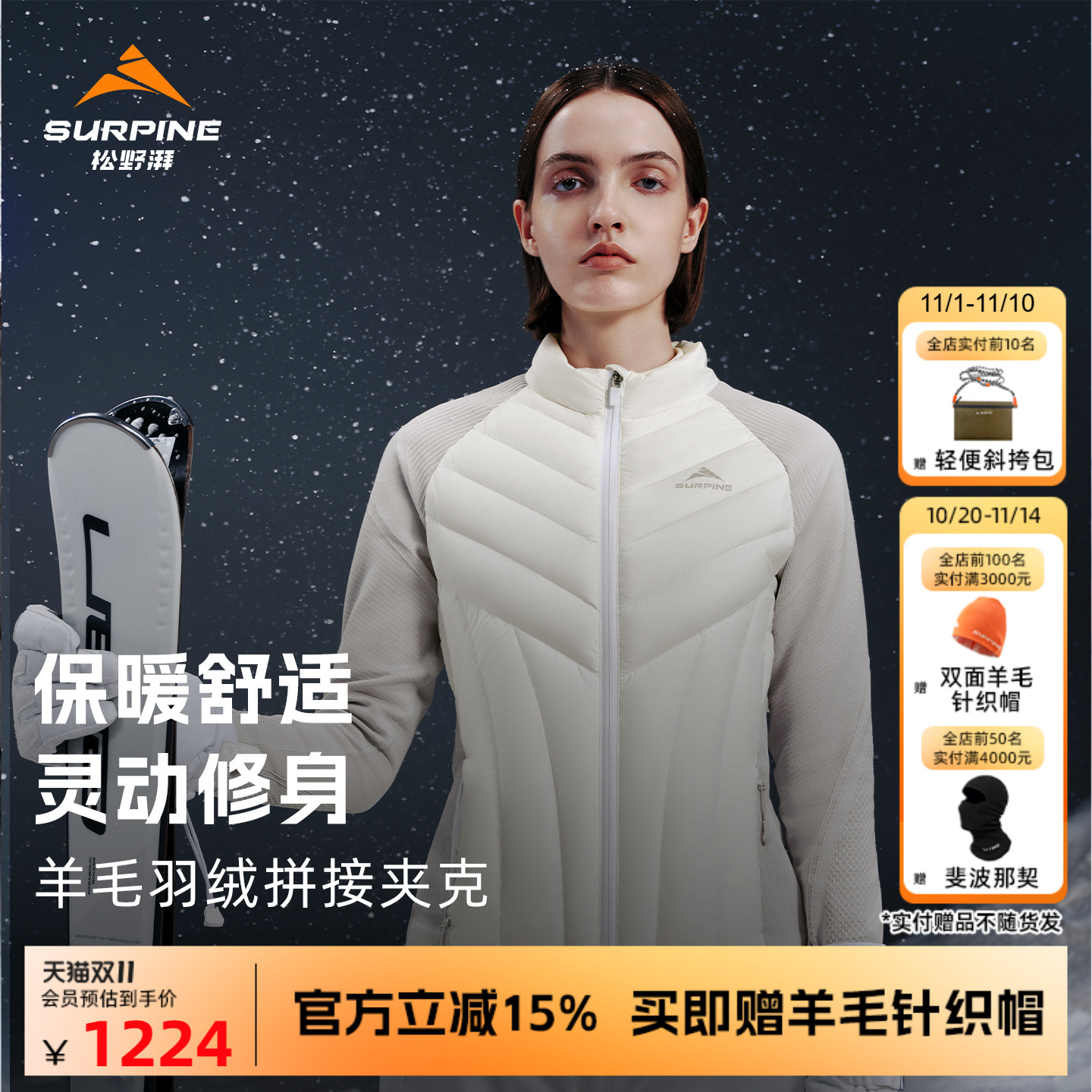 SURPINE Matsuno Pamerino wool knit down liner mid-layer women's warm ski jacket goose down