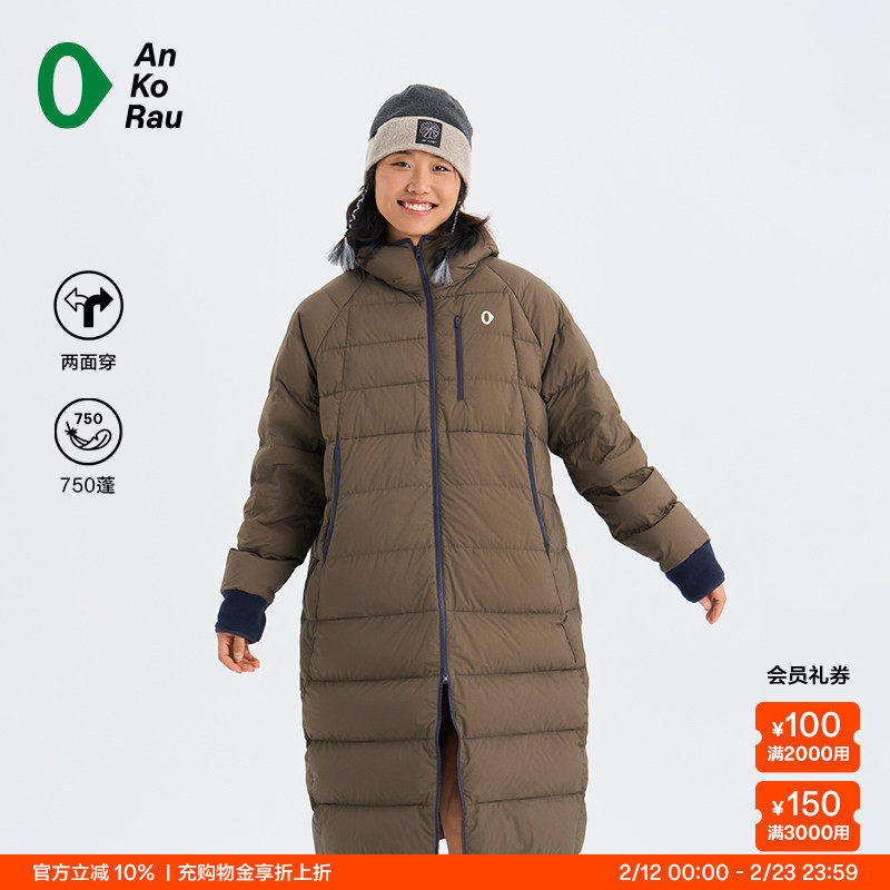 Can I Stop Women's Outdoor 750 Fluffy Goose Down Reversible Long Down Jacket | AnKoRau An Gaoruo