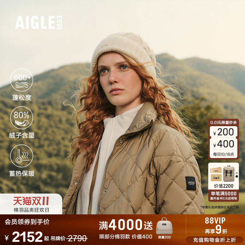 AIGLE Women's Down Jacket Outdoor Thermal Top Water-repellent Down Jacket 25 Autumn New Products