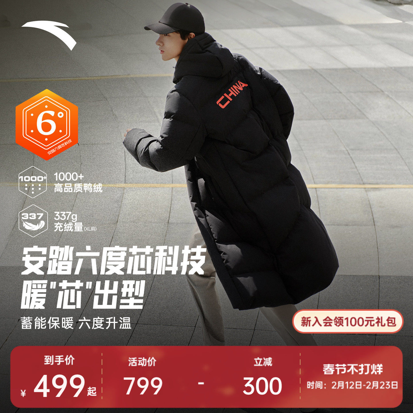 Anta Lin Xiaojun down jacket men's spring new over-the-knee long cotton jacket duck down warm sports jacket top