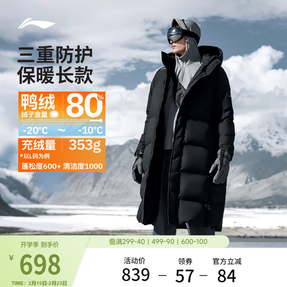Li Ning hot pot down jacket丨Men's winter duck down thickened outdoor top hooded clothes long sports jacket men