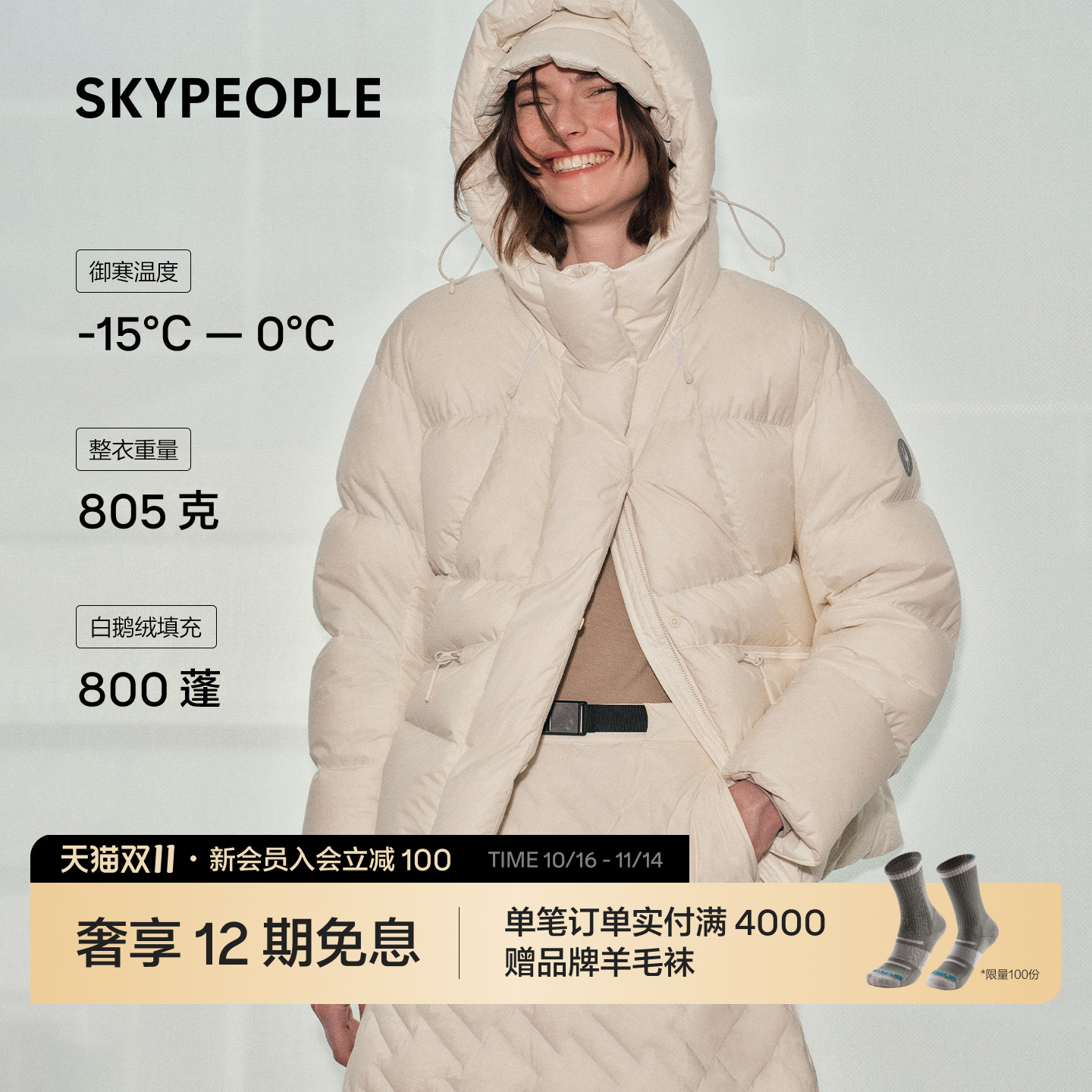 SKYPEOPLE TCI5 Women's Glow™ Windproof Hooded Bread Down Jacket