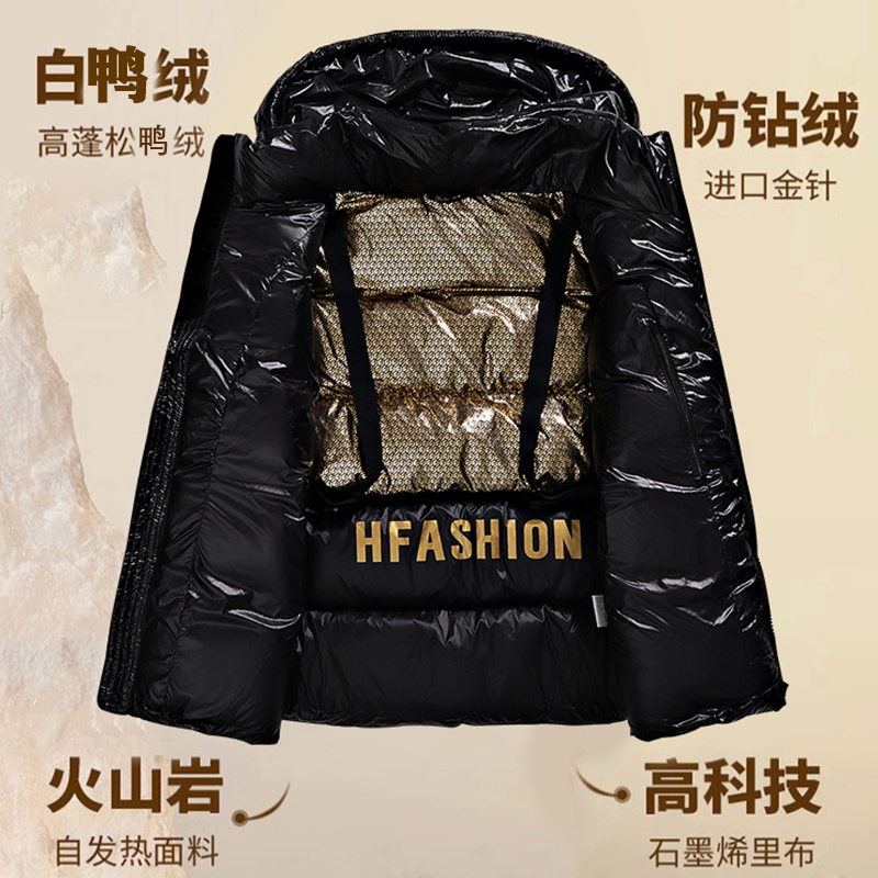 Black gold down jacket duck down jacket bread suit for men and women thickened winter men's 2025 winter men's jacket waterproof and ultra-light