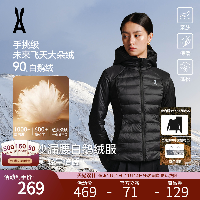 【90 Goose Down】Anoutu hourglass waist light rib down jacket women's slim elastic inner windproof and detachable hat