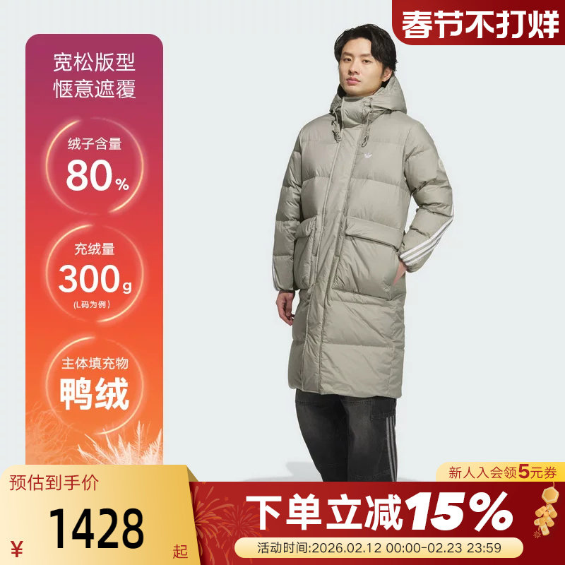 adidas Adidas Clover Long Over Knee Duck Down Hooded Down Jacket Men's and Women's Warm Winter Clothes KF3698