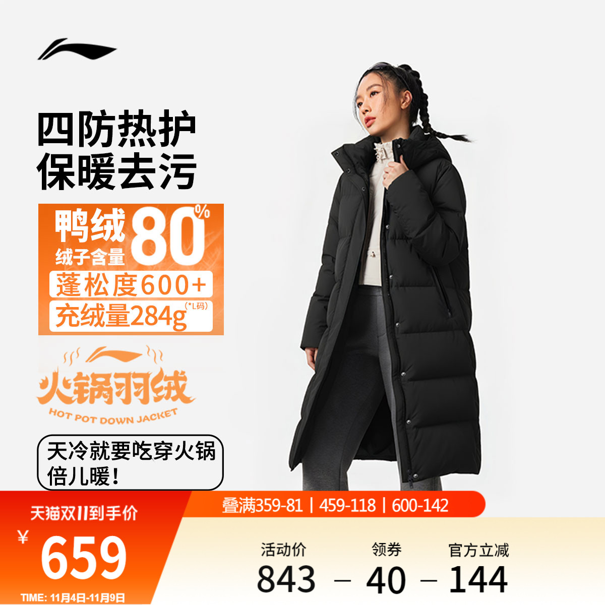 Li Ning hot pot down jacket丨Women's winter long goose down clothes warm and thickened tops with hooded sports jackets