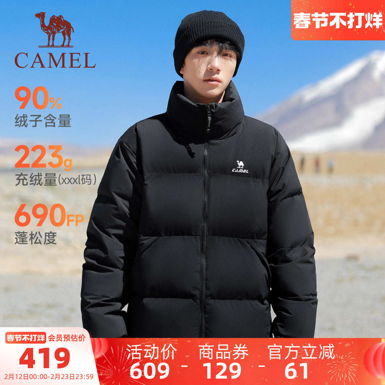 Camel down jacket men's and women's stand-up collar/hood thickened water-repellent and windproof bread jacket