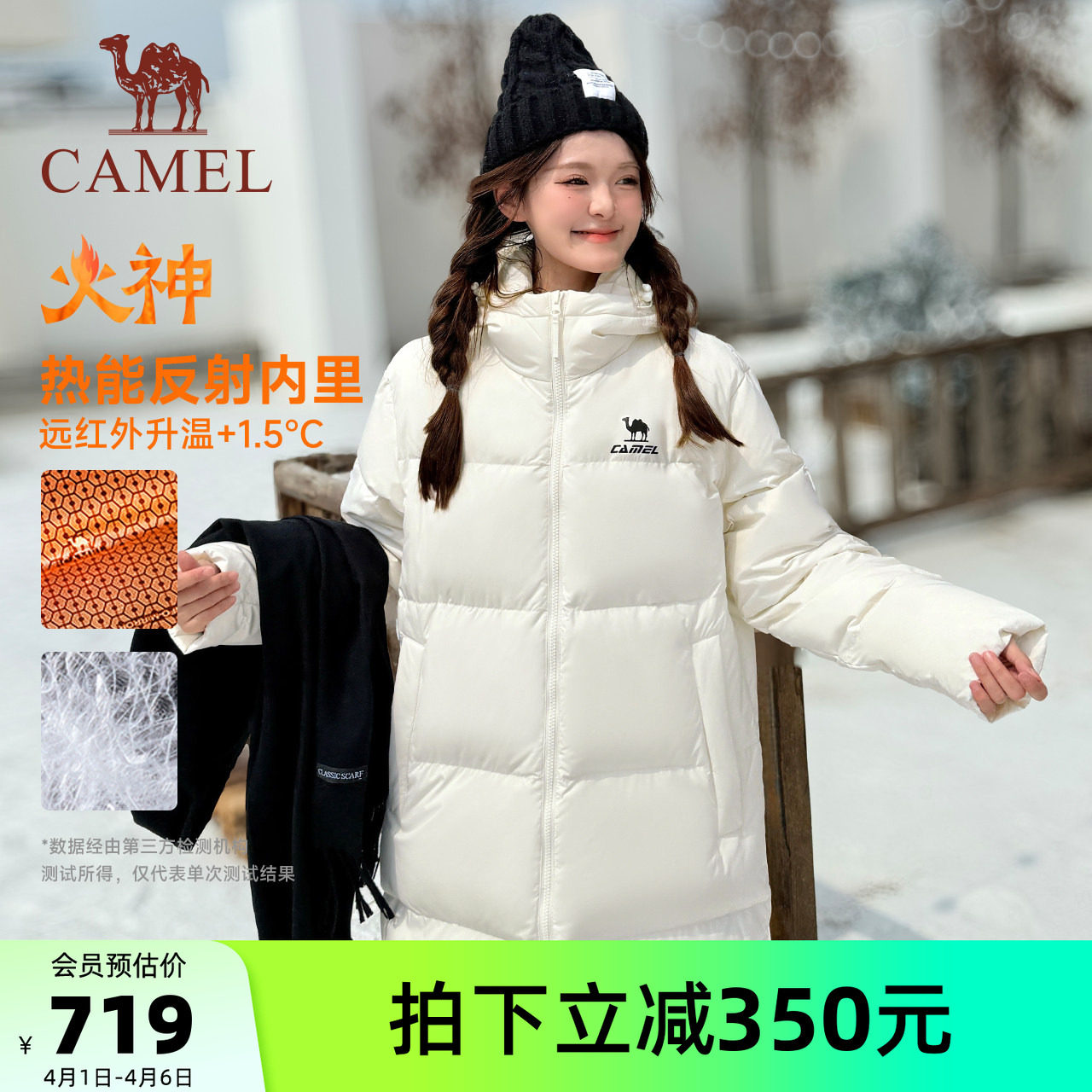 Camel Vulcan down jacket, Beiying mid-length winter women's men's 90-down thickened hooded water-repellent down jacket