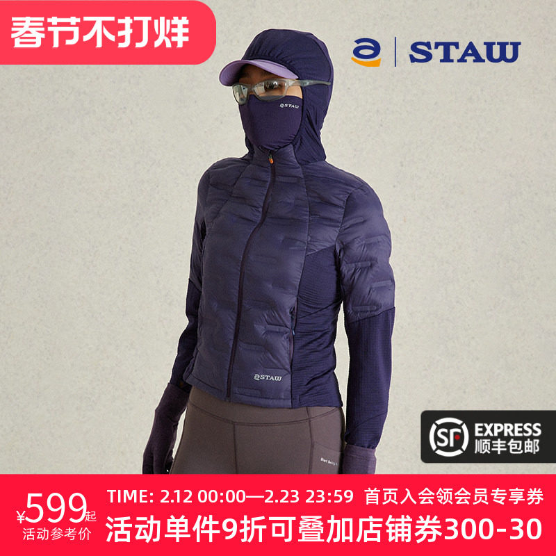 STOW fleece hooded down jacket 95 water-repellent goose down running autumn and winter warm antibacterial training sports jacket