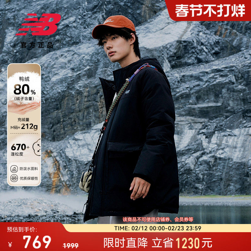 New Balance NB official new men's and women's mid-length winter warm and water-repellent duck down jacket AMJ53372
