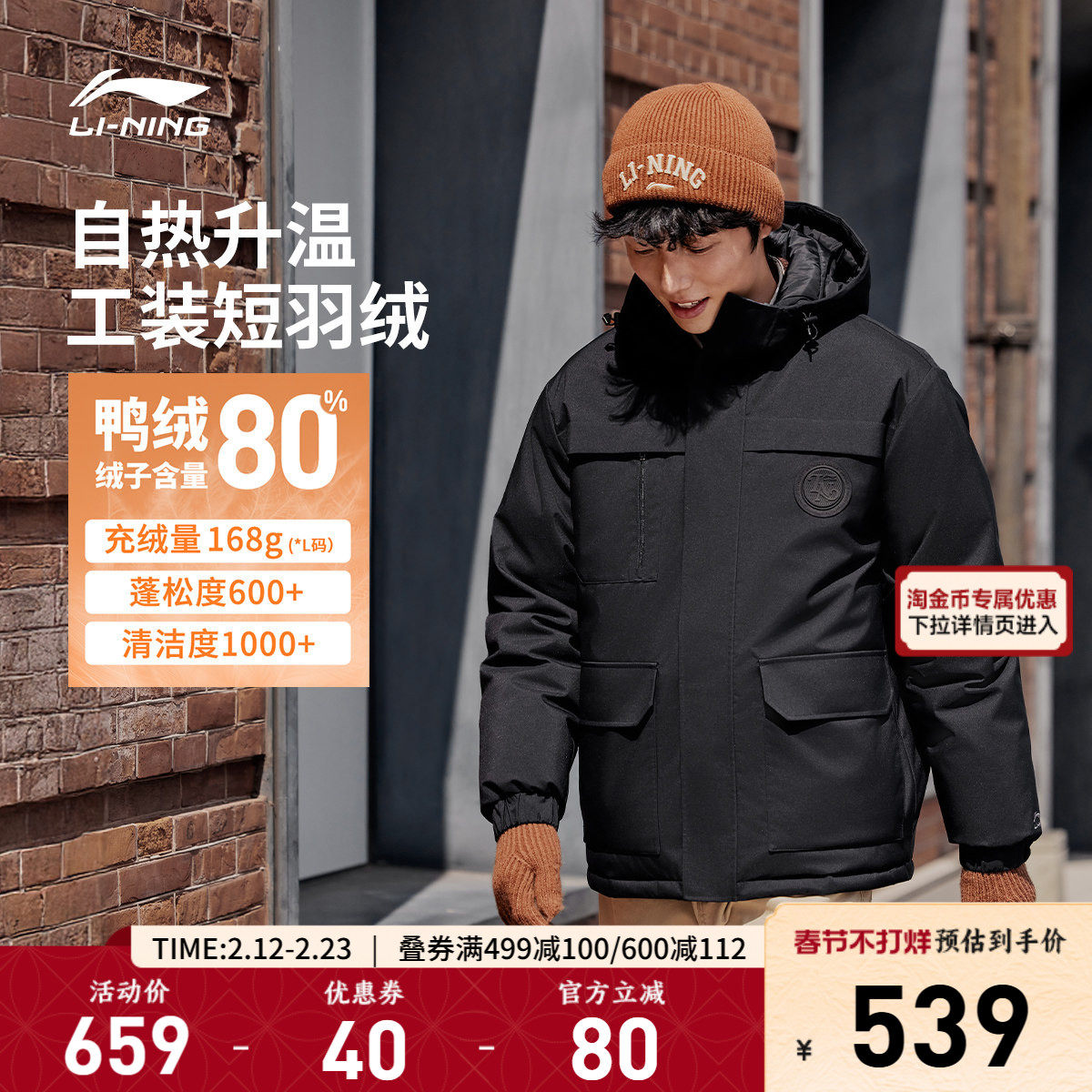 Li Ning hot pot down jacket丨Men's winter duck down cropped tops for couples warm cotton jackets and red sports jackets for women