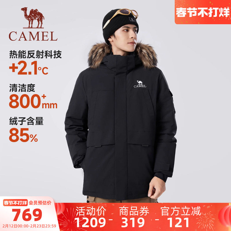 Camel sports big fur collar down jacket men's winter thickened workwear outdoor warmth coldproof windproof water-repellent jacket