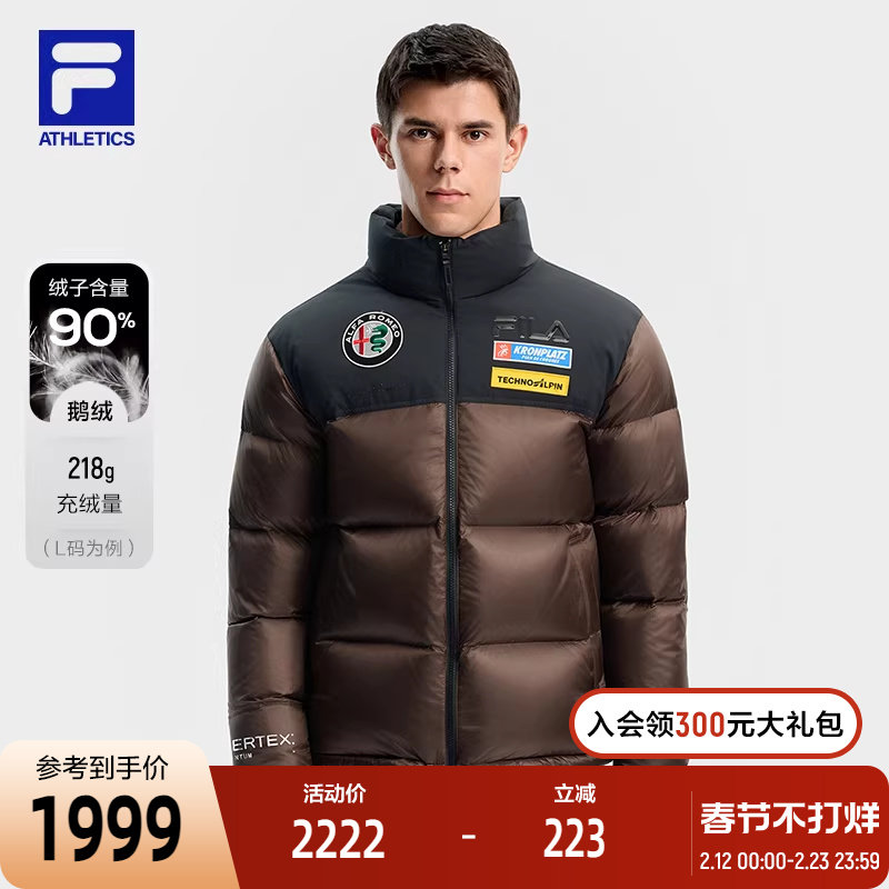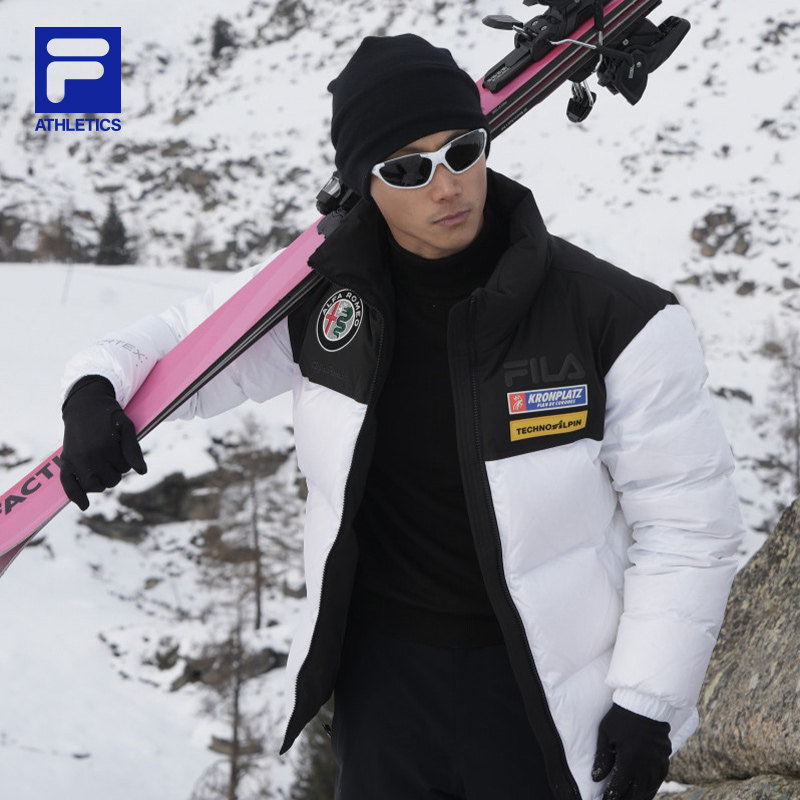 FILA Official Men's Down Jacket 2025 Winter New Ski Sports Contrast Stand Collar Warm Jacket