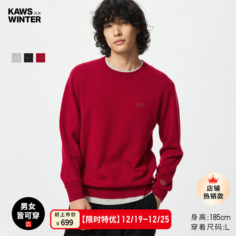Uniqlo Men's Women's KAWS Cashmere Crew Neck Knitwear Long Sleeve Sweater Sweater 25 Fall/Winter New 485272