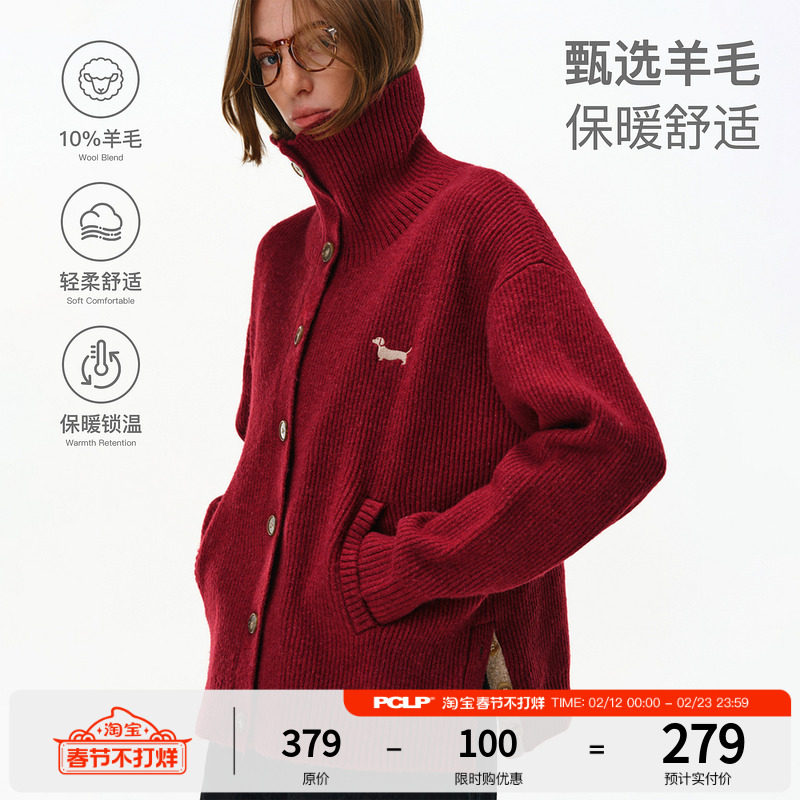 PCLP "wool souffle" embroidered small high-label turtleneck sweater winter national trend brand hem slit cardigan jacket