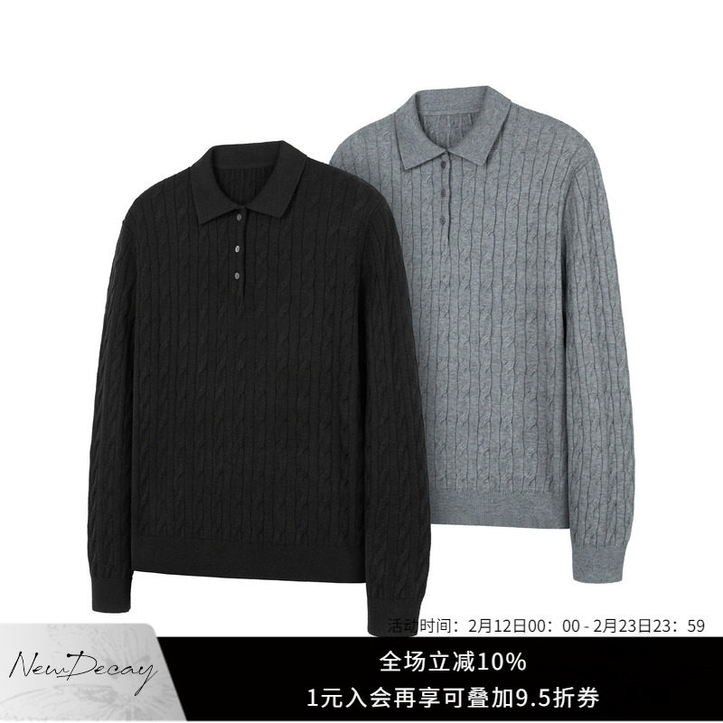 DERT*50% wool layered fake two-piece double-collar long sleeve sweater intellectual