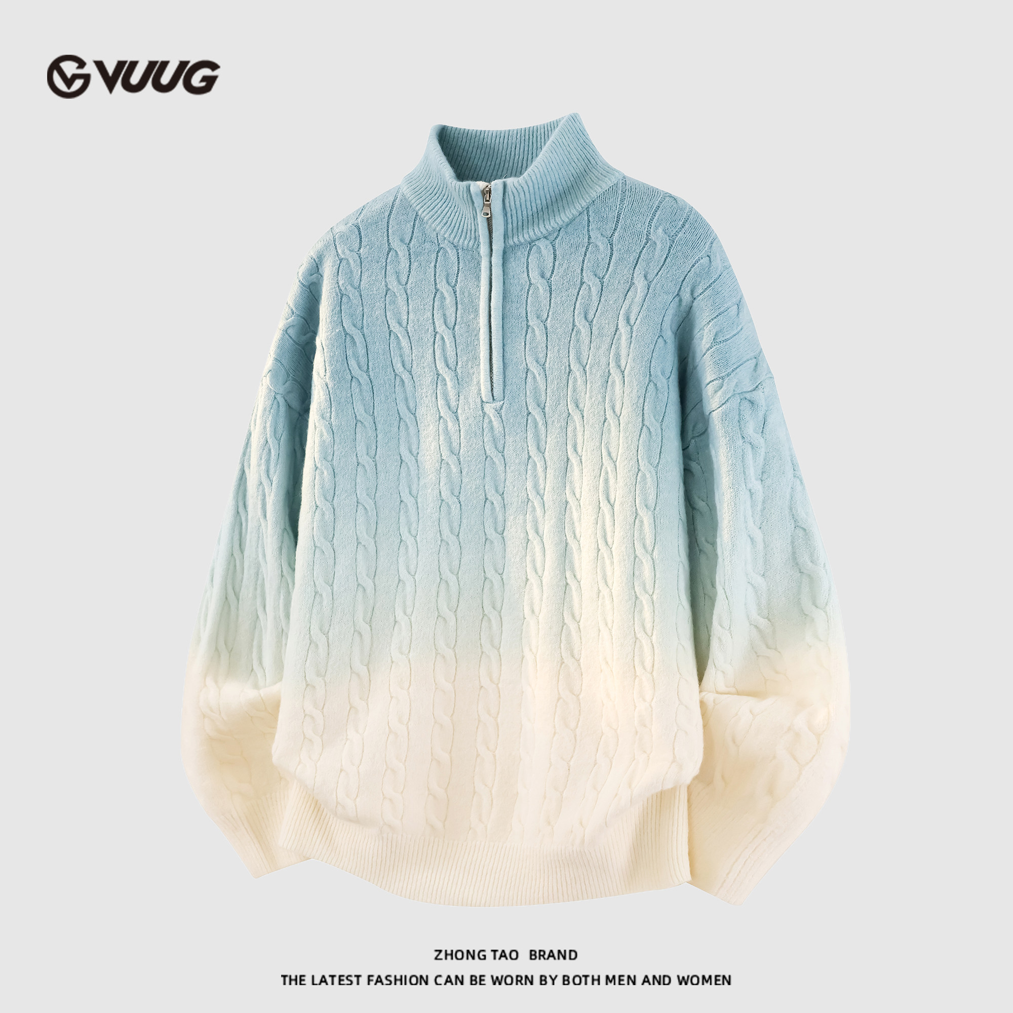 VUUG Japanese lazy twist sweater men's autumn and winter new gradient warm base boys' knitwear