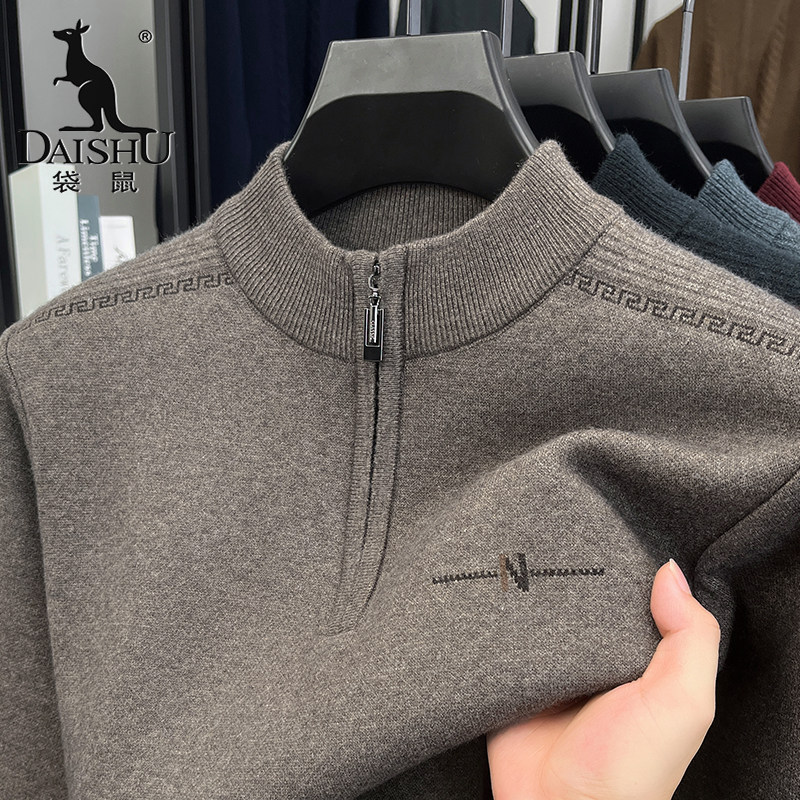 Kangaroo winter sweater men's middle-aged and elderly thickened warm dad outfit semi-turtleneck zipper knit base liner