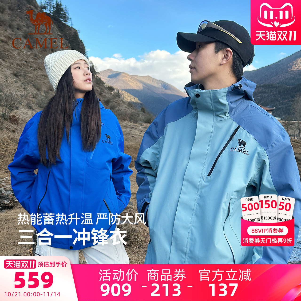 Camel 3-in-1 jacket men's and women's flagship blue waterproof outdoor hiking suit