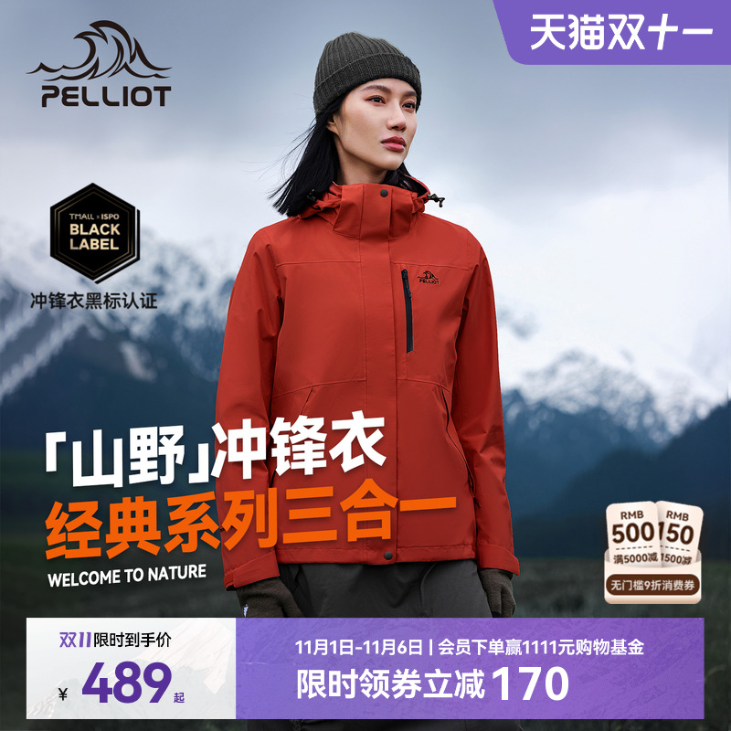 【Mountain Wild】Bo Xi and outdoor red jacket women's winter fleece liner three-in-one waterproof jacket for men