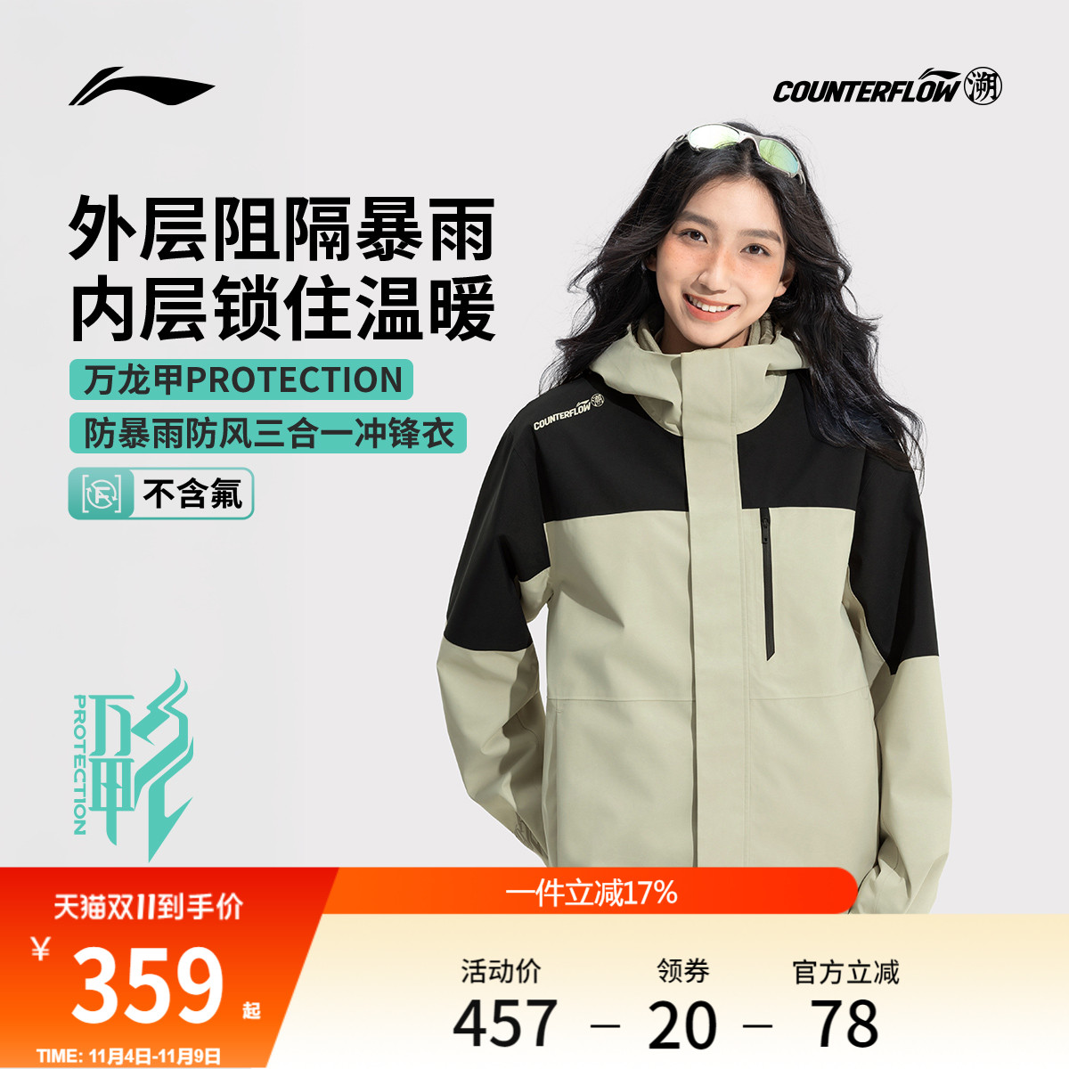 Li Ning outdoor CF trace丨Wanlong armor three-in-one jacket for men and women, fleece and thickened mountaineering hard shell jacket