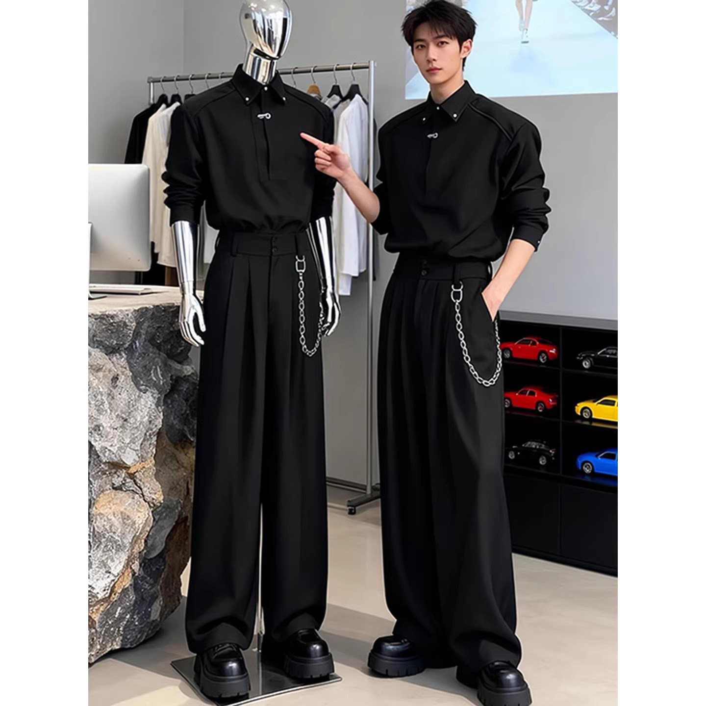 Korean Uamtor black ascetic suit long-sleeved shirt men's spring high-end outfit draped wide-leg trousers