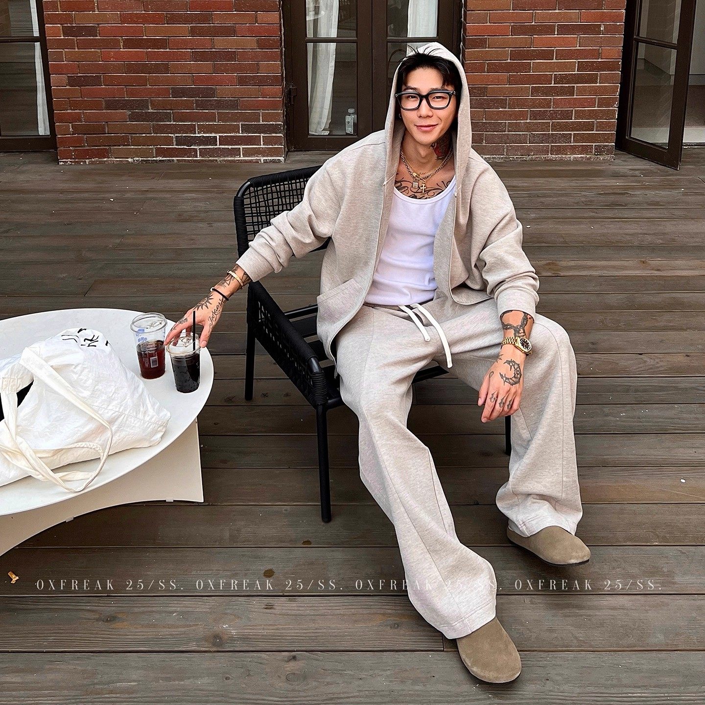 OXFREAK "Wool Blend Long-termism" Sportssuit Men's Cardigan Sweatshirt Hooded Straight-Leg Slacks